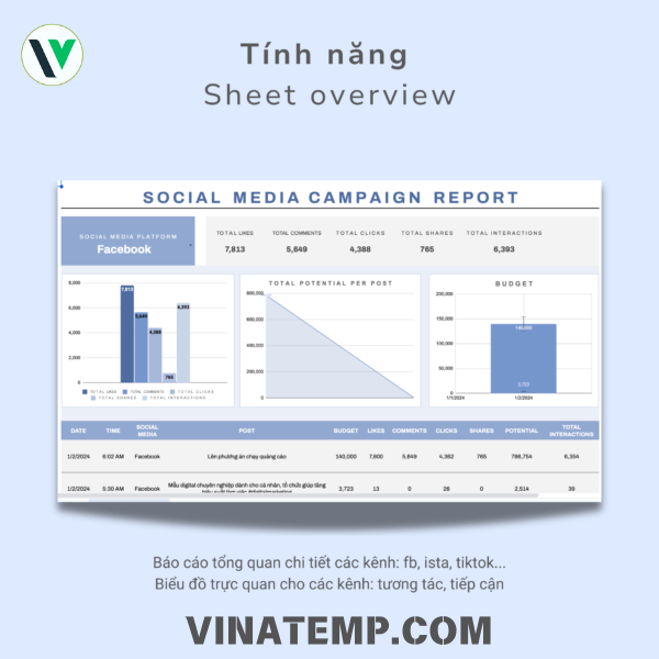Với việc sử dụng bảng tính này, bạn có thể tạo ra báo cáo chính xác và chi tiết để định hình và cải thiện chiến lược tiếp thị của mình trên các nền tảng mạng xã hội.